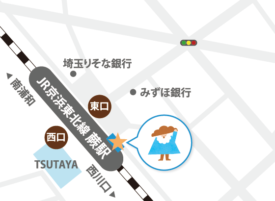 JR京浜東北線蕨駅 東口階段下りてすぐ